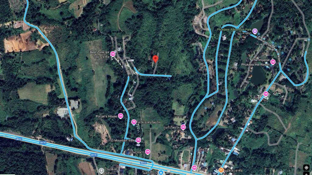 อยู่ในโครงการบ้านภูหนาว ติดกับภูแก้วรีสอร์ต ใกล้ทางหลวงแผ่นดิน หมายเลข 21